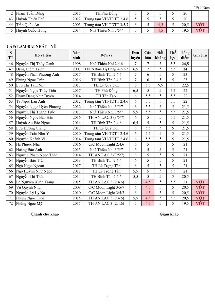Kết Quả Kì Thi Thăng Cấp Vovinam Quận Bình Tân K50-2024
