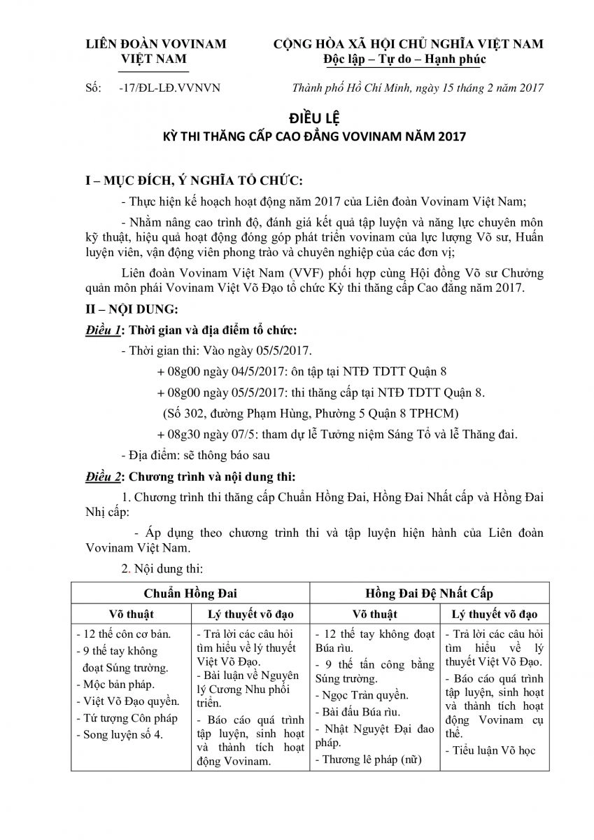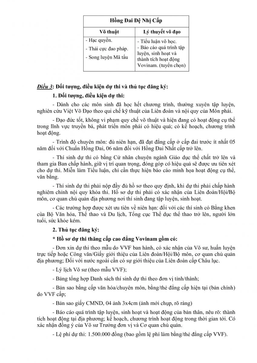 ĐIỀU LỆ KÌ THI THĂNG CẤP CAO ĐẲNG HVVF