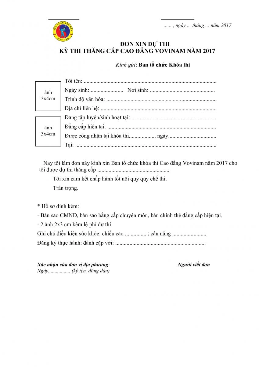 MẪU ĐƠN THI THĂNG CẤP