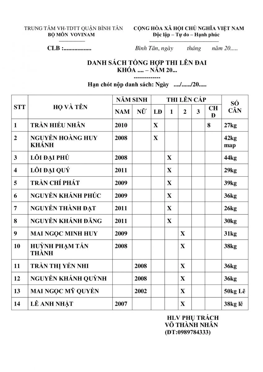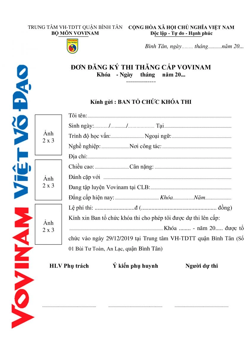 MẪU ĐƠN THI QUẬN BÌNH TÂN